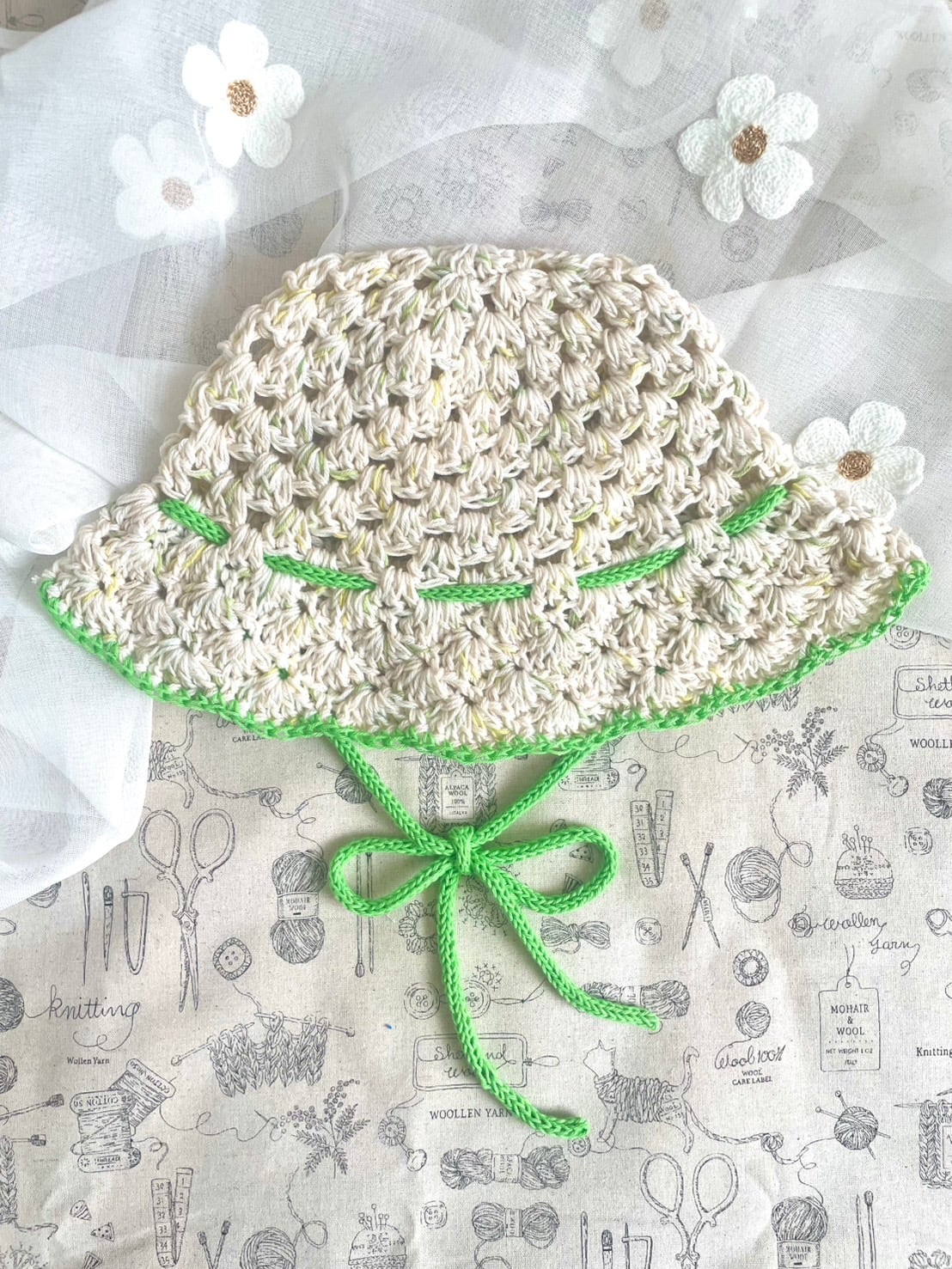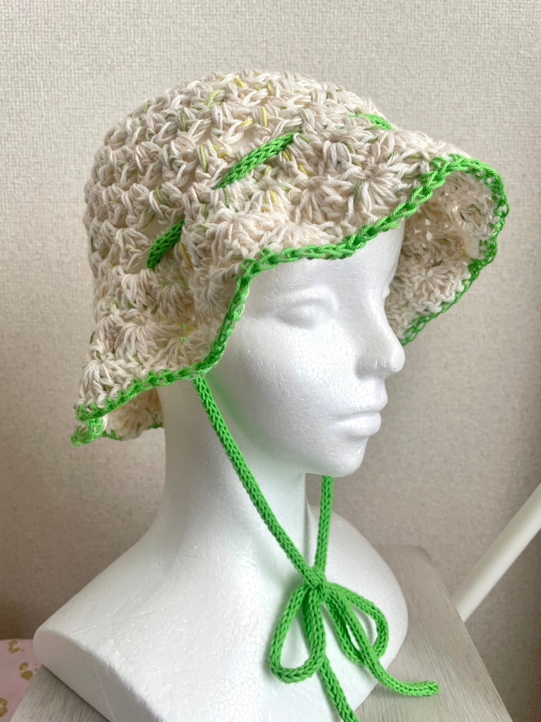 リボンのアクセントがポイントのクロシェハット。